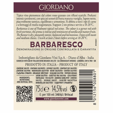 $945.00Procede de la uva 100% Nebbiolo, una variedad exigente que requiere suelos fértiles y profundos, y prefiere las laderas empinadas. Se vinifica de forma tradicional, con largas maceraciones de los hollejos, y posteriormente se envejece durante al menos 3 años en barricas de roble, en bodegas con luz, humedad y temperatura constantes.