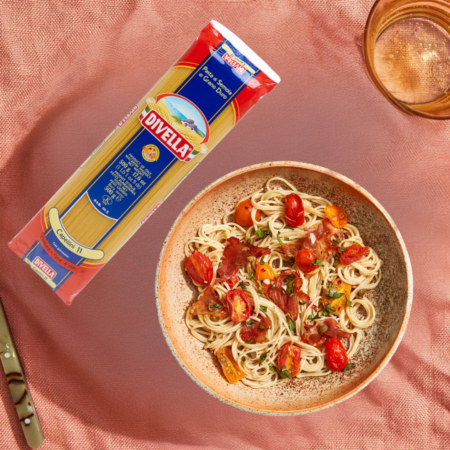 Una pasta farfalle de estructura equilibrada ideal para aportar dinamismo, textura y una presencia visual atractiva que enriquece la presentación del plato.
