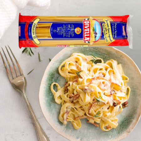 Pasta tipo fettuccine de estructura amplia diseñado para integrarse con salsas ricas y aportar una textura envolvente que realza la experiencia del plato.